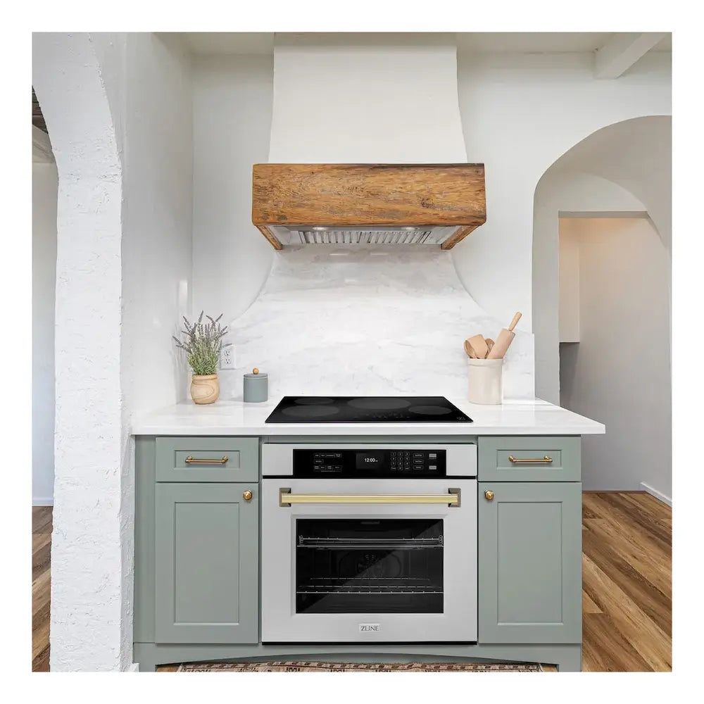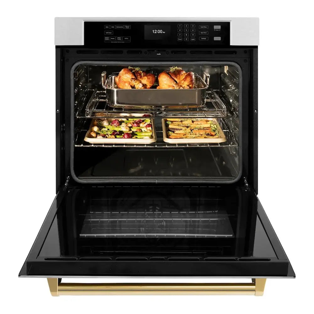 ZLINE WASSZ30G 30 inch Autograph Edition Single Wall Oven with 5 cu. ft. Capacity, True Convection, Air Fry Mode and Self Clean (Satin Stainless Steel, Polished Gold)